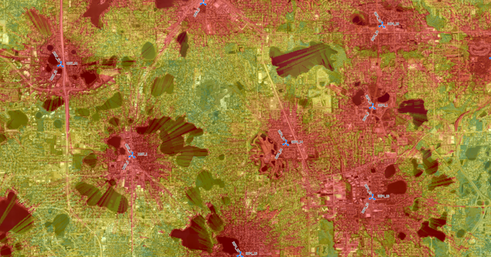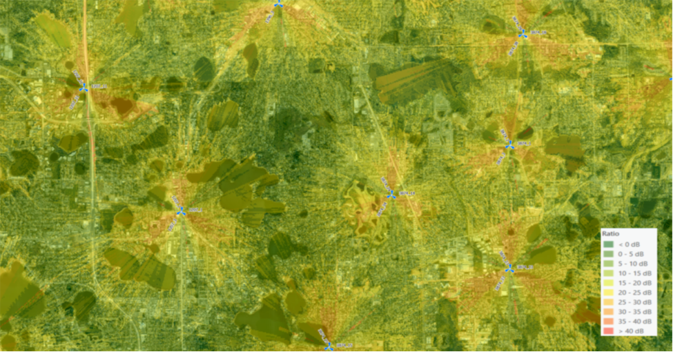 - C/I rasters show Carrier-to-interference ratio in dB, to account for inter-cell interference from nearby cells that utilize the same carrier.