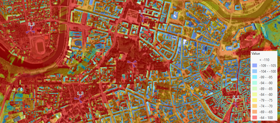 - Received Signal Strength Indicator (RSSI) estimated values' raster in dBm.