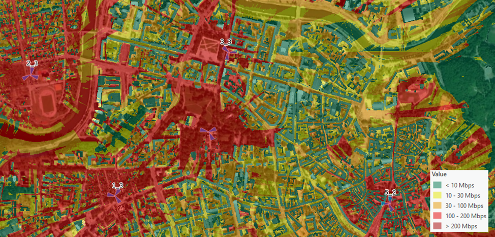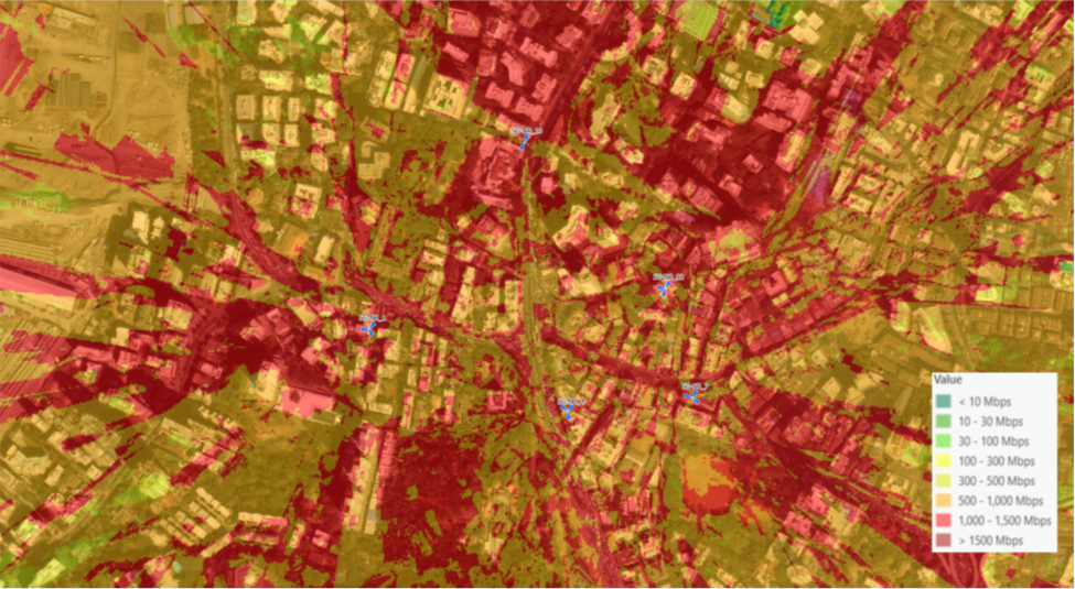 - Estimated achievable Downlink Throughput values’ raster in Mbps.