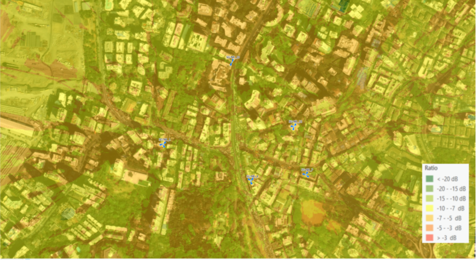 - Reference Signal’s – Signal to Interference and Noise Ratio (RS-SINR) estimated values’ raster in dB.